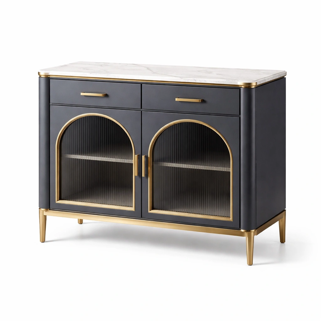 Aparador de madera de roble con cristal estriado